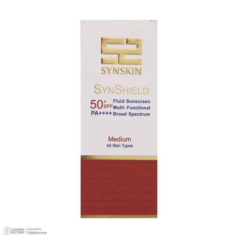 فلوئید ضد آفتاب رنگی MEDIUM ساین اسکین SPF 50 مدل Syn shield مناسب انواع پوست