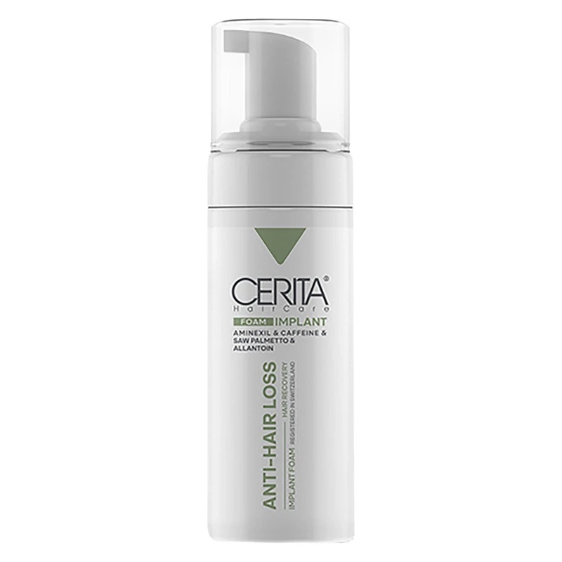 شامپو فوم پس از کاشت مو سریتا مخصوص موهای کاشته شده و پی آر پی، حجم 150 میلیلیتر مدل ایمپلنت ، حاوی کافئین، ضد خارش، تقویتکننده، تنظیم چربی پوست سر و ضدالتهاب با عصاره چای سبز و آلانتوئین