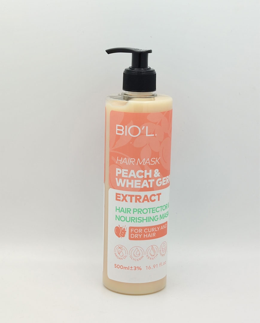 ماسک تقویتکننده و مرطوبکننده مو بیول مدل Peach And Wheat مخصوص موهای فر و خشک حاوی عصاره هلو مناسب استفاده داخل حمام